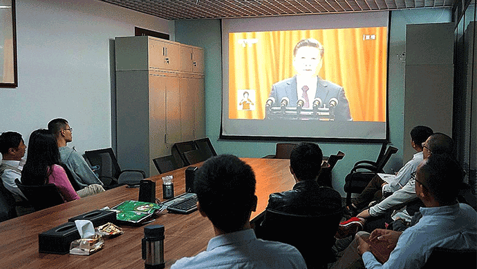 2017年10月18日,中国共产党第十九次全国代表大会隆重开幕,党员、员工认真聆听习近平总书记所作的题为《决胜全面建成小康社会 夺取新时代中国特色社会主义伟大胜利》的报告。